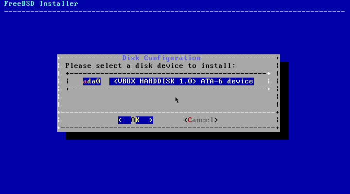 Экран выбора жесткого диска перед установкой операционной системы FreeBSD