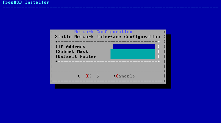 Экран конфигурирования сетевого интерфейса перед установкой операционной системы FreeBSD с заполненными данными