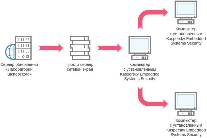Kaspersky Embedded Systems Security для Windows будет получать обновления через одно из защищаемых устройств.