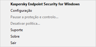 O Kaspersky Endpoint Security irá colocar em pausa o funcionamento de todos os componentes de proteção e controlo que não estejam identificados com uma fechadura () na política. Antes de executar esta operação, recomenda-se a desativação da política do Kaspersky Security Center.