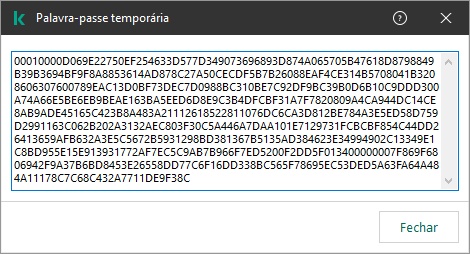 Uma password temporária pode ser usada para conceder acesso temporário ao Kaspersky Endpoint Security para um computador individual fora da rede corporativa. Isso é necessário para permitir que o utilizador execute uma ação bloqueada sem obter as credenciais da conta do KLAdmin. Para usar uma password temporária, o computador deve ser adicionado ao Kaspersky Security Center.