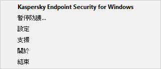 暫停電腦防護和控制表示停用 Kaspersky Endpoint Security 的所有防護和控制元件一段時間。