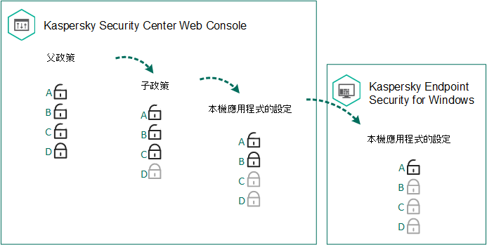 內容,它表示設定可以在子政策中修改還是在本機應用程式設定中修改。僅當為子政策中啟用了繼承父政策設定時,
