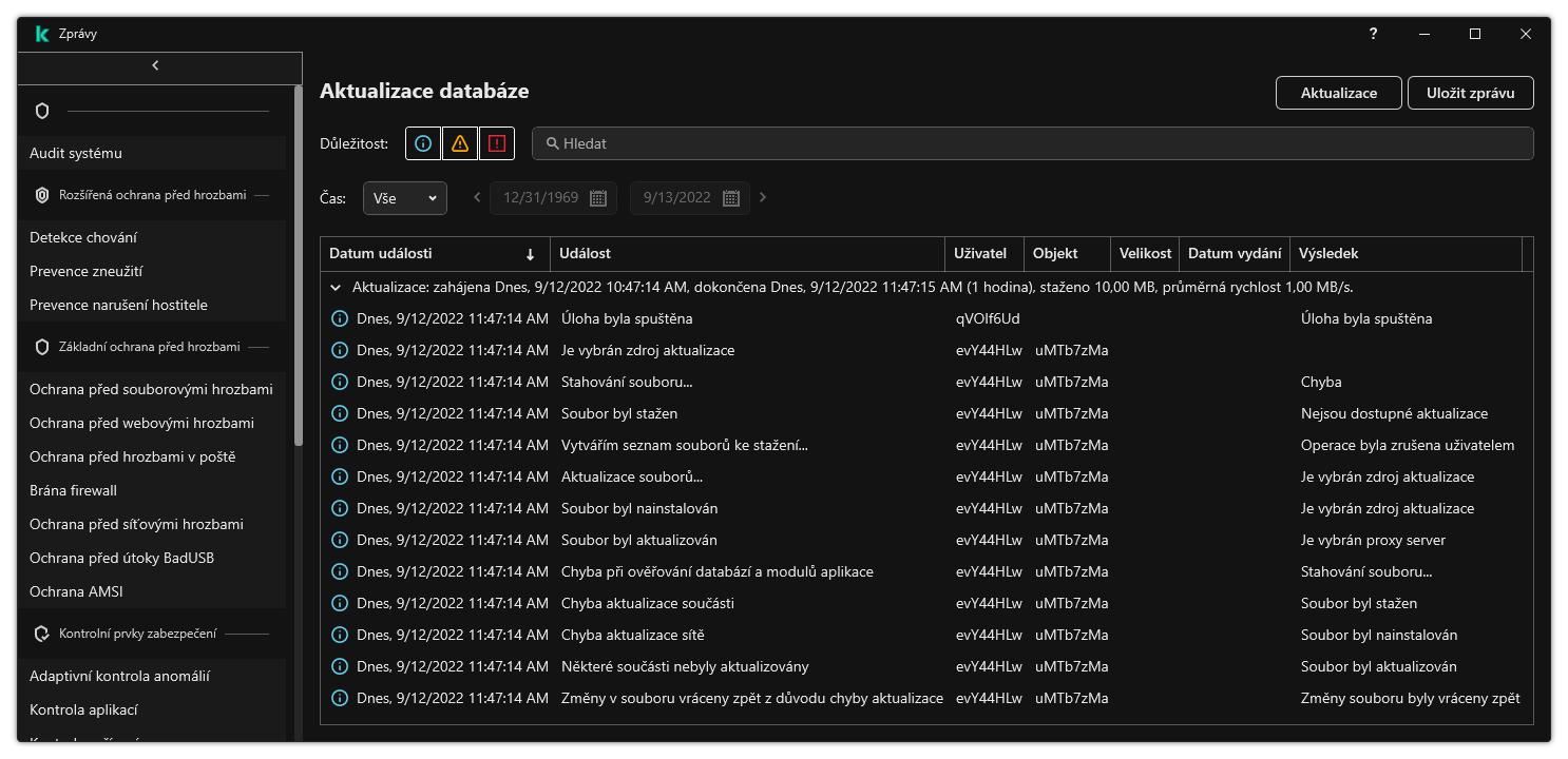 V pravé části okna se zobrazí zpráva, která obsahuje seznam událostí, k nimž došlo během provozu vybrané součásti nebo v průběhu prováděné úlohy aplikace Kaspersky Endpoint Security.