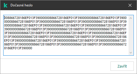 Pomocí dočasného hesla lze udělit dočasný přístup k aplikaci Kaspersky Endpoint Security jednotlivému počítači mimo podnikovou síť. To je nezbytné k tomu, aby bylo uživateli povoleno provést blokovanou akci bez nutnosti získání přihlašovacích údajů účtu KLAdmin. Chcete-li použít dočasné heslo, počítač je nutné přidat do aplikace Kaspersky Security Center.