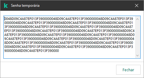Uma senha temporária pode ser usada para conceder acesso temporário ao Kaspersky Endpoint Security para um computador individual fora da rede corporativa. Isso é necessário para permitir que o usuário execute uma ação bloqueada sem obter as credenciais da conta do KLAdmin. Para usar uma senha temporária, o computador deve ser adicionado ao Kaspersky Security Center.