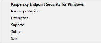 Sair. Este item permite sair do Kaspersky Endpoint Security. Clicar neste item de menu contextual retira a aplicação da memória RAM do computador.