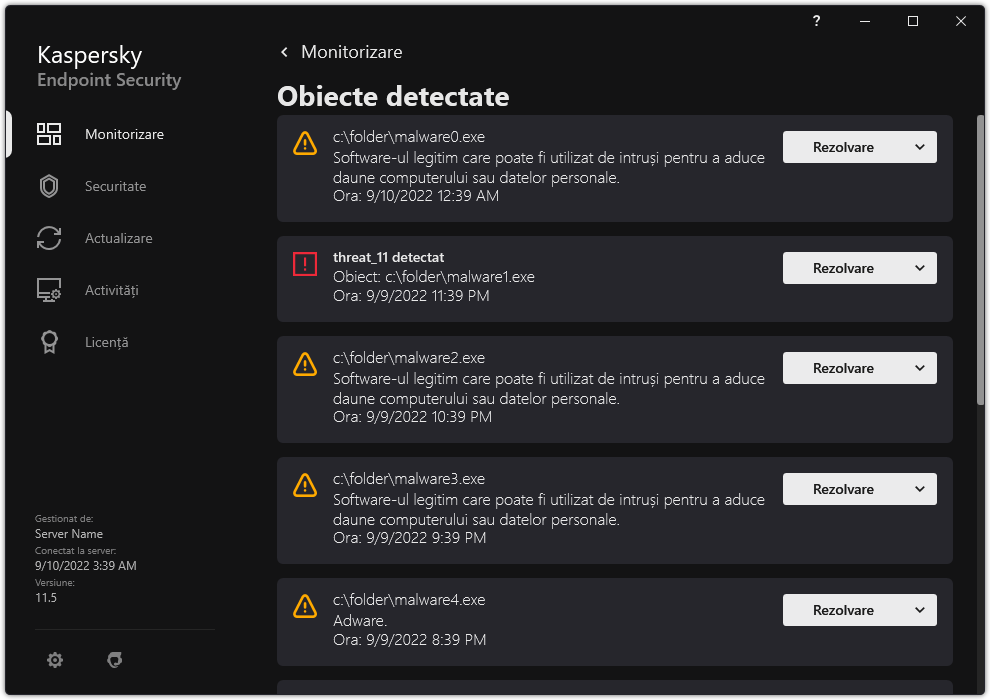 Dezinfectarea amenințărilor active de pe servere