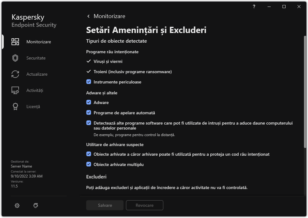 Kaspersky Endpoint Security identifică următoarele tipuri de programe: