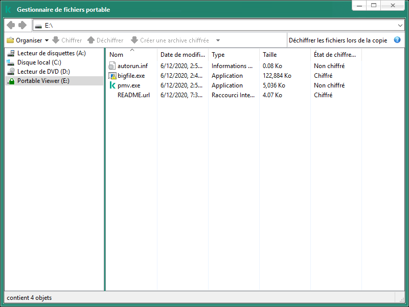 Mode portable pour utiliser les fichiers chiffrés sur les disques amovibles