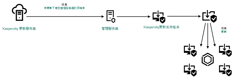 更新包由 Kaspersky Endpoint Security 的“更新”任务分发到客户端计算机。您可以为每个管理组创建无限数量的更新任务。