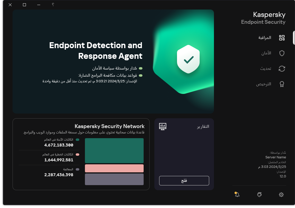 نتيجة لذلك، يتم تثبيت EDR Agent على الكمبيوتر. ويمكنك استخدام واجهة التطبيق ويتم عرض أيقونة التطبيق في منطقة الإخطارات