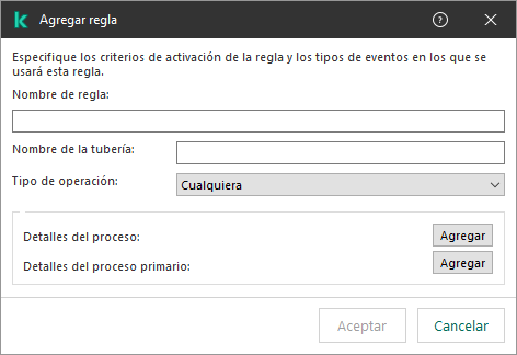 Kaspersky Endpoint Security combina los criterios de activación de la regla con un operador lógico AND.
