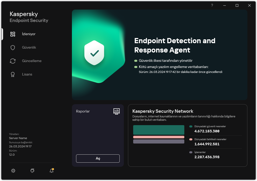 Kaspersky Managed Detection and Response ve Kaspersky Anti Targeted Attack Platform (EDR) çözümleri için Endpoint Detection and Response Agent (EDR Agent) yapılandırmasında Kaspersky Endpoint Security aynı şekilde kurulur.