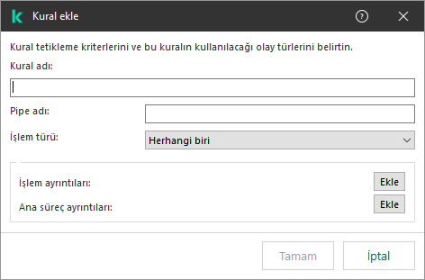 Kaspersky Endpoint Security, kural tetikleme kriterlerini mantıksal bir VE ile birleştirir.
