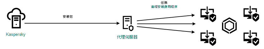 安裝套件是為透過卡巴斯基安全管理中心遠端安裝 Kaspersky 應用程式而建立的一組檔案。安裝套件中包含安裝應用程式以及安裝後立即執行應用程式所需的一系列設定。安裝套件透過應用程式分發套件中包括的副檔名為 .kpd 和 .kud 的檔案建立。Kaspersky Endpoint Security 安裝套件通用於所有受支援的 Windows 版本和處理器架構類型。