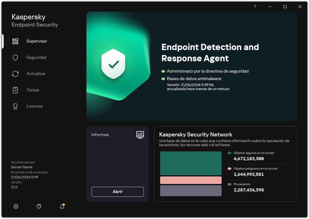 Como consecuencia, EDR Agent se instala en el equipo del usuario. Puede utilizar la interfaz de la aplicación, y se muestra un ícono de la aplicación en el área de notificaciones