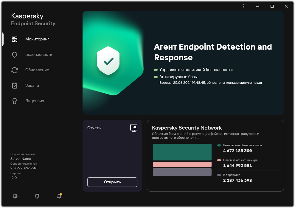 Главное окно EDR-агента