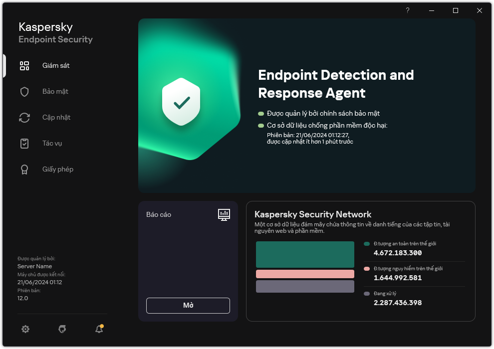 Bây giờ bạn phải cấu hình tích hợp với giải pháp Kaspersky Managed Detection and Response hoặc Kaspersky Anti Targeted Attack (EDR). Bạn cũng có thể chỉ định thiết lập nâng cao của ứng dụng, ví dụ: tạo một khu vực tin tưởng hoặc ẩn giao diện ứng dụng. Thiết lập trong các phần sau khả dụng: