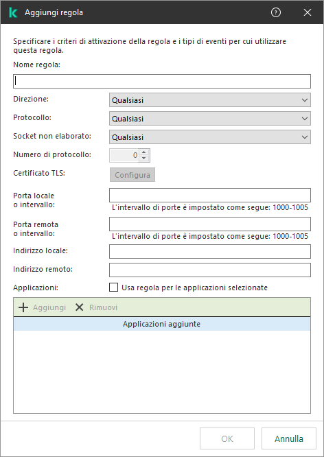 Kaspersky Endpoint Security combina i criteri di attivazione delle regole con un AND logico.