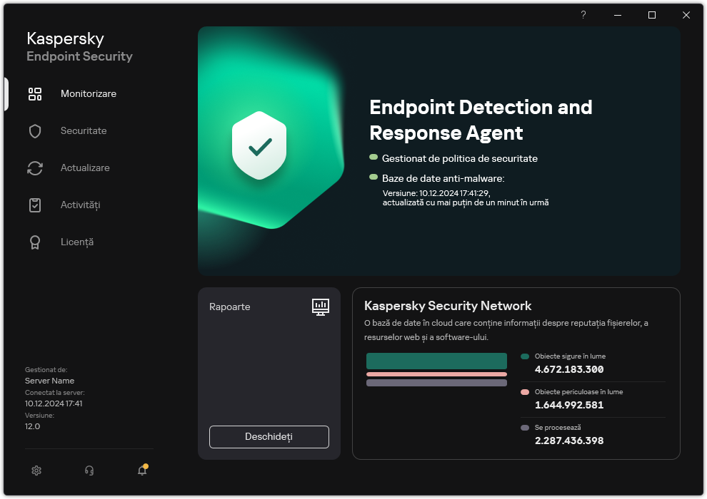 Fereastra principală a EDR Agent