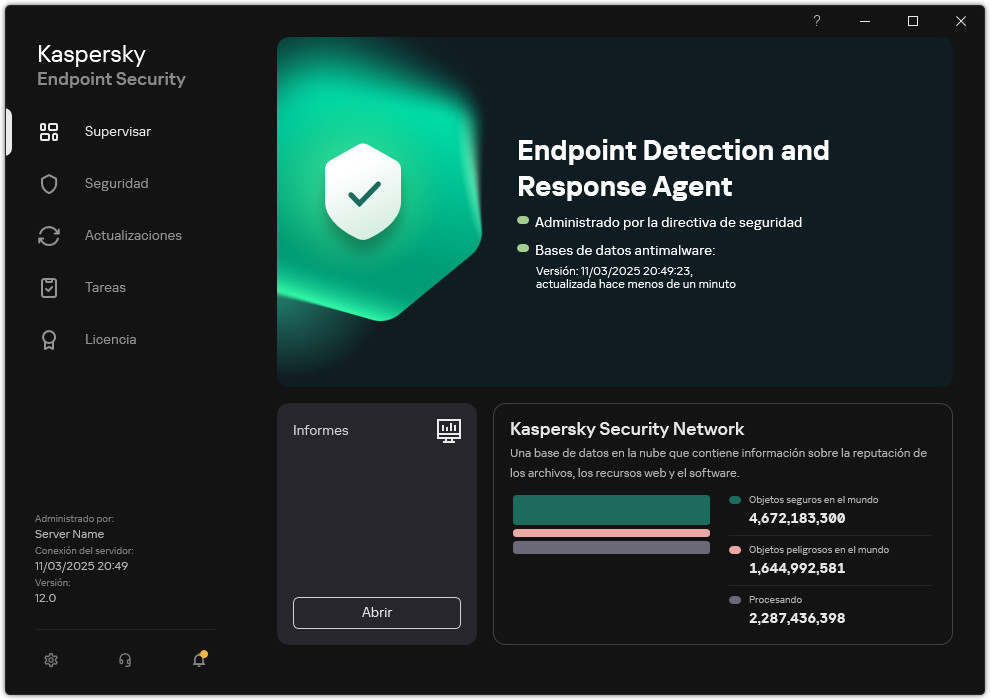 Kaspersky Endpoint Security en la configuración de Endpoint Detection and Response Agent (EDR Agent) para las soluciones Kaspersky Detection and Response se instala de la misma manera.