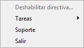 Menú contextual del ícono de la aplicación al mostrar la interfaz simplificada