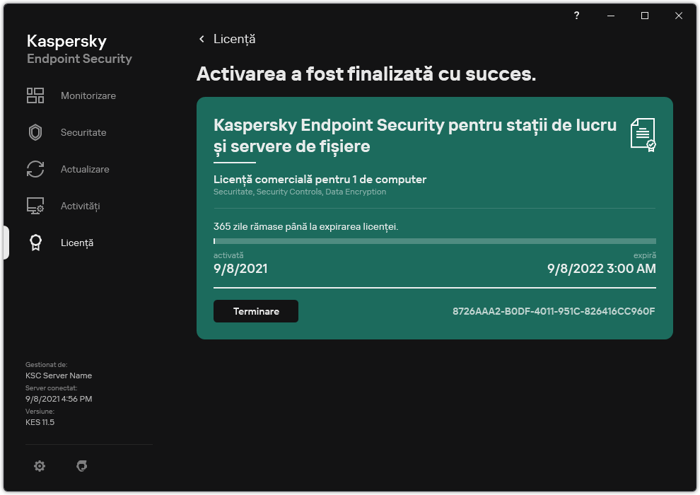 Ora expirării licenței se afișează în funcție de fusul orar configurat în sistemul de operare.