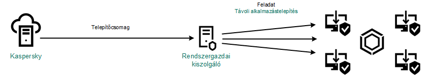 A telepítőcsomag fájlok egy csoportját jelenti, amik a Kaspersky alkalmazás távoli, Kaspersky Security Center-en keresztül történő telepítésére lettek létrehozva. A telepítőcsomag az alkalmazás telepítéséhez szükséges számos beállítást tartalmaz, a telepítés után ezeket egyből futtatja. A telepítőcsomag az alkalmazás forgalmazási készletben található, .kpd és .kud kiterjesztésű fájlok használatával lett létrehozva. A Kaspersky Endpoint Security telepítőcsomag a Windows támogatott verziói, valamint a processzor-architektúrák esetében is használatos.
