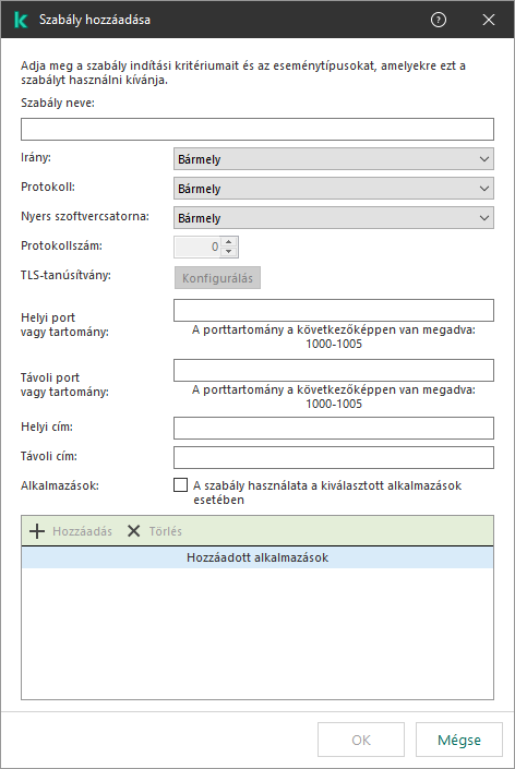 A Kaspersky Endpoint Security a szabálykiváltó feltételeket a logikai AND jelekkel kombinálja.
