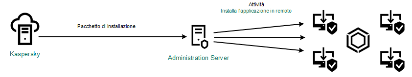 Kaspersky Security Center fornisce la Distribuzione guidata della protezione per installare l'applicazione nei computer aziendali. La Distribuzione guidata della protezione include le seguenti azioni principali:
