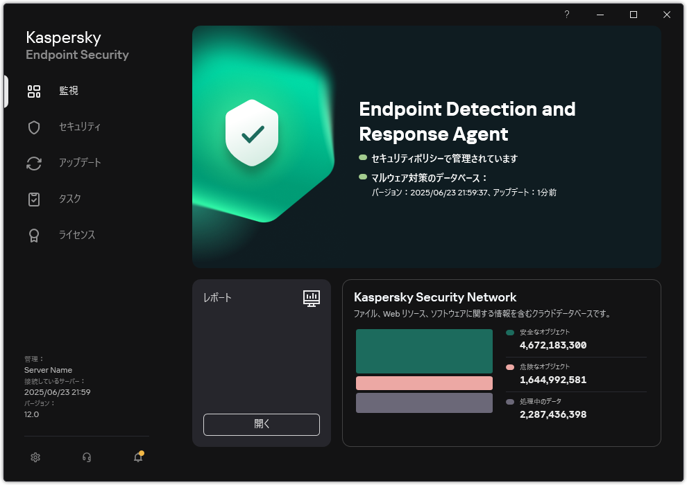 Kaspersky Detection and Response ソリューション用の Endpoint Detection and Response Agent (EDR Agent) 設定の Kaspersky Endpoint Security も、同様にインストールします。
