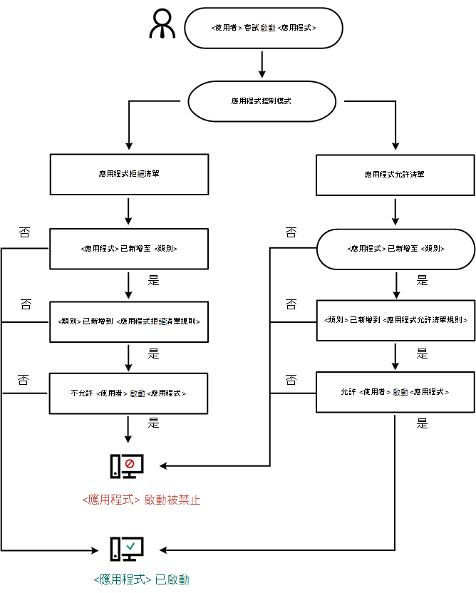 Kaspersky Endpoint Security 使用算法來決定是否啟動應用程式(請參見下圖)。