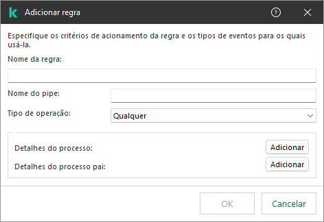 O Kaspersky Endpoint Security combina critérios de acionamento de regra com um E lógico.