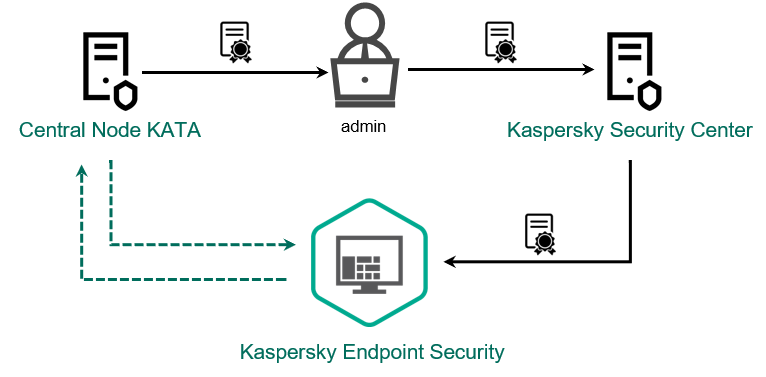 Kaspersky Anti Targeted Attack Platform requires establishing a trusted connection between Kaspersky Endpoint Security and the Central Node component. To configure a trusted connection, you must use a TLS certificate. You can get a TLS certificate in the Kaspersky Anti Targeted Attack Platform console (see instructions in the Kaspersky Anti Targeted Attack Platform Help). Then you must add the TLS certificate to Kaspersky Endpoint Security (see instructions below).