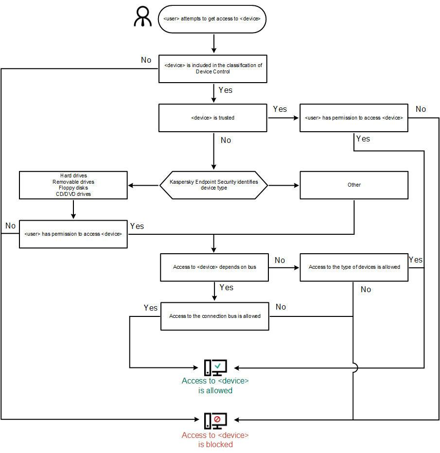 Kaspersky Endpoint Security makes a decision on whether to allow access to a device after the user connects the device to the computer (see the figure below).
