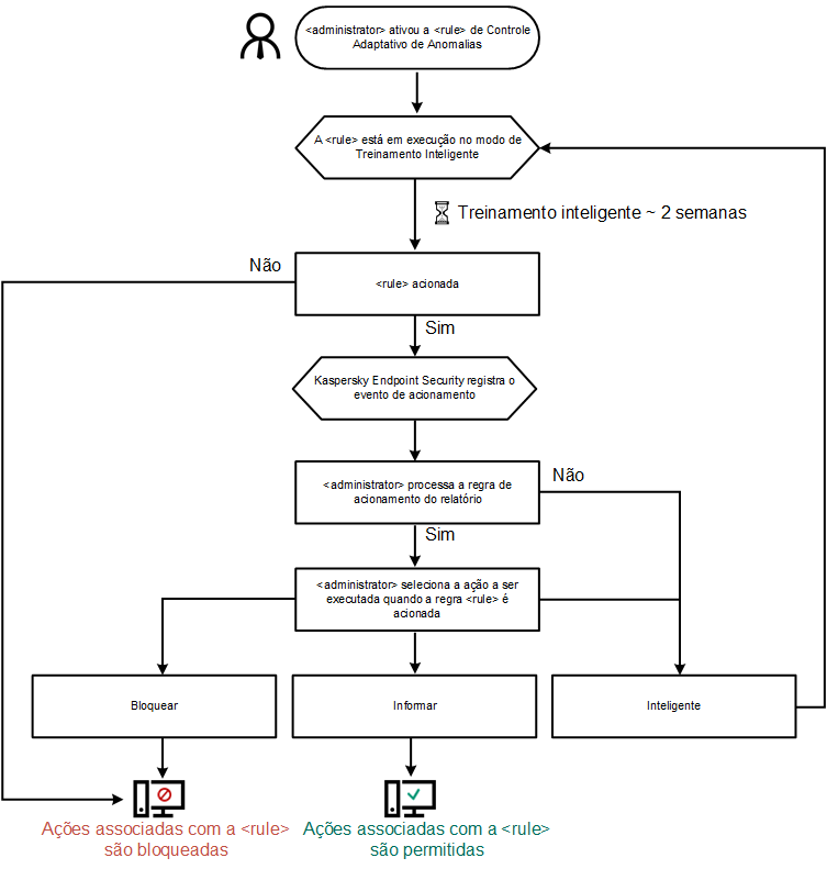Se uma regra não foi acionada durante o treinamento, o Controle Adaptativo de Anomalias considerará as ações associadas a essa regra como incomuns. O Kaspersky Endpoint Security irá bloquear todas as ações associadas a essa regra.