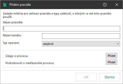 Kaspersky Endpoint Security kombinuje kritéria aktivující pravidlo logickým ANO.