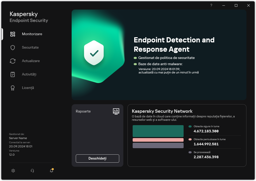 Fereastra principală a EDR Agent