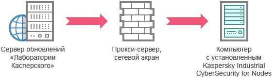 Kaspersky Industrial CyberSecurity for Nodes будет получать обновления через Сервер администрирования Kaspersky Security Center.