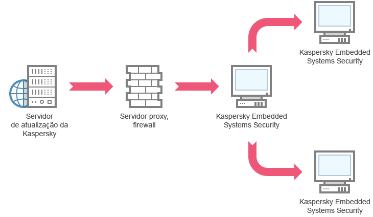 O Kaspersky Embedded Systems Security for Windows obterá atualizações através de um dos dispositivos protegidos.