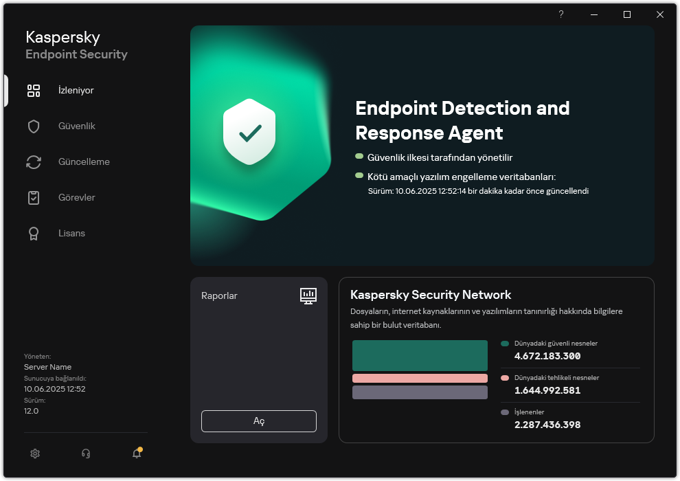Kaspersky Endpoint Security, Kaspersky Detection and Response çözümleri için Endpoint Detection and Response Agent (EDR Agent) yapılandırmasında aynı şekilde yüklenir.
