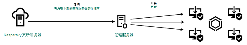 更新包由 Kaspersky Endpoint Security 的“更新”任务分发到客户端计算机。您可以为每个管理组创建无限数量的更新任务。