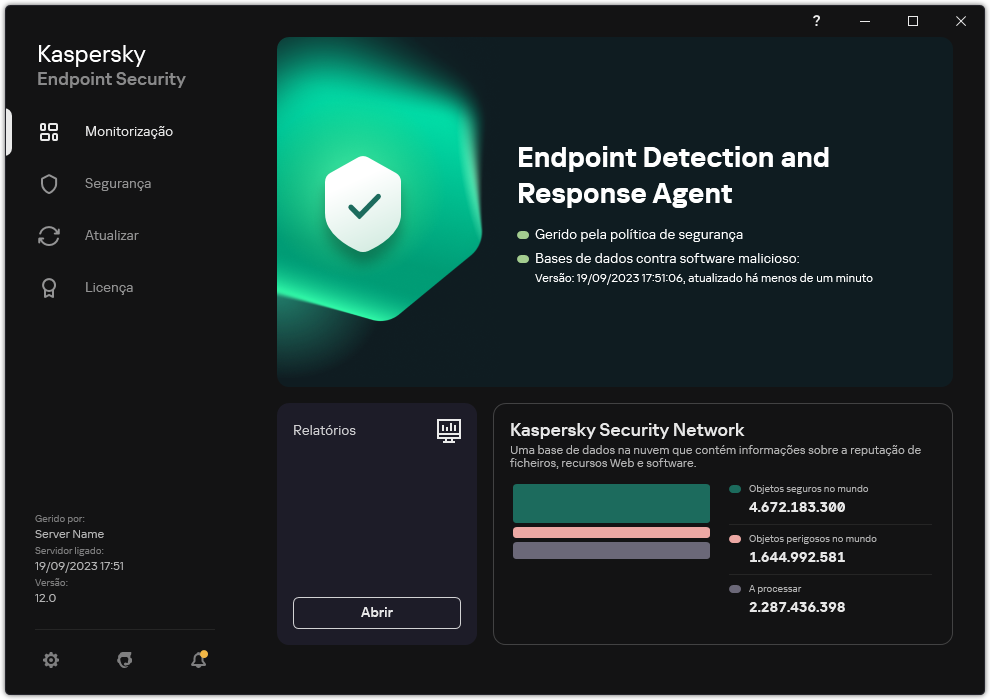 Janela principal do EDR Agent