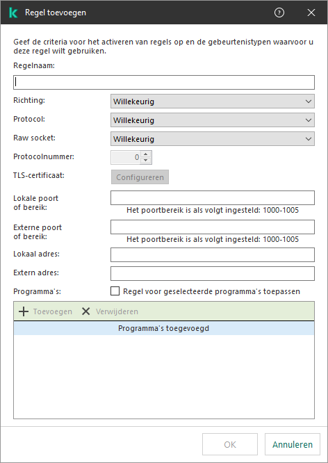 Kaspersky Endpoint Security combineert activeringscriteria van regel met een logische EN.