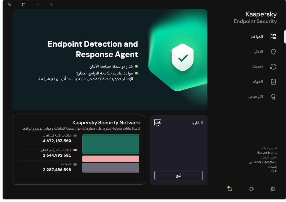 نتيجة لذلك، يتم تثبيت EDR Agent على الكمبيوتر. ويمكنك استخدام واجهة التطبيق ويتم عرض أيقونة التطبيق في منطقة الإخطارات