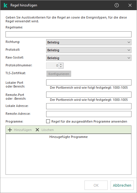 Kaspersky Endpoint Security kombiniert Kriterien für die Regelauslösung mit einem logischen UND.