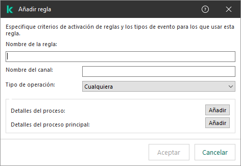 Kaspersky Endpoint Security combina criterios de activación de reglas con un operador lógico AND.