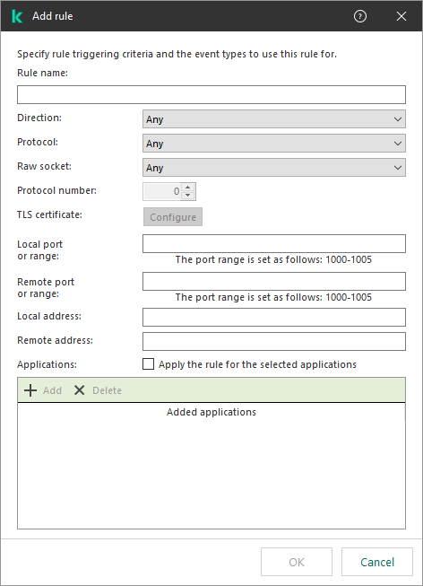 Kaspersky Endpoint Security combines rule triggering criteria with a logical AND.