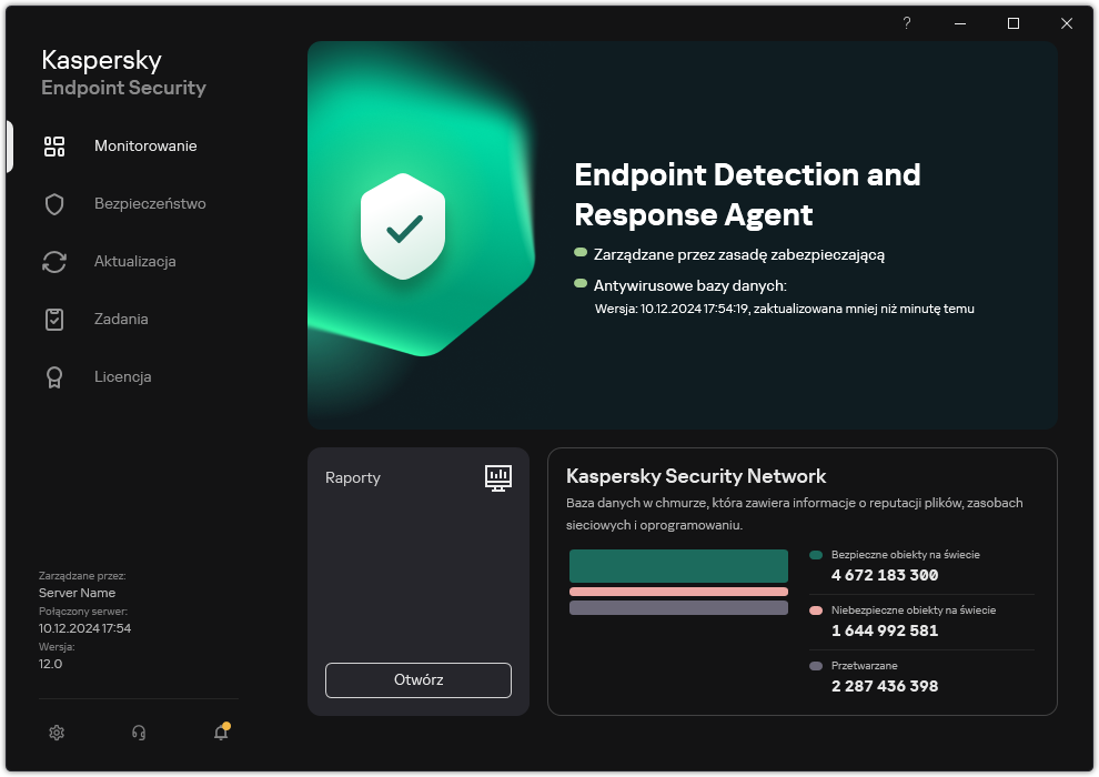 Kaspersky Endpoint Security w konfiguracji Endpoint Detection and Response Agent (EDR Agent) dla rozwiązań Kaspersky Detection and Response instaluje się w ten sam sposób.